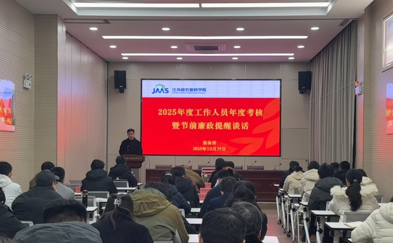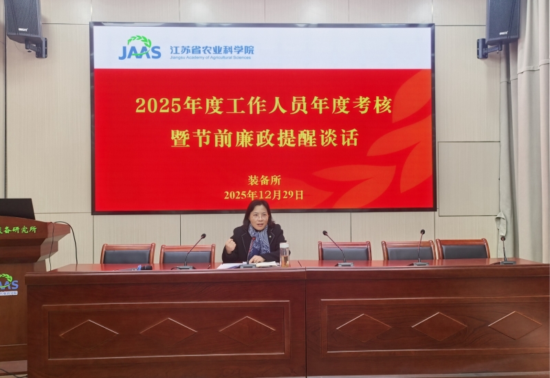 装备所所长、党总支书记袁爱萍对考核推优会进行了小结。她通过一组数据展示了全所2025年度奋斗成效,对全体职工的辛勤付出与积极贡献表示感谢。面对即将开始的“十五五”新征程,她提出三点要求:一要“抬头看天明方向”,精准锚定党中央、江苏省委及院党委的战略部署,自觉融入发展大局,在全面推进乡村振兴、加快建设农业强国的征程中,找准自身定位,主动担当作为。二要“低头耕耘强根基”,紧紧围绕团队发展目标,深耕产业、聚力攻关,持续锤炼专业本领,砥砺务实作风,为各项工作开展筑牢坚实基础。三要“同心同向聚合力”,大力弘扬团结、友善、奋进、担当的优良作风,强化沟通协同,凝聚奋进共识,为推动全所高质量发展继续携手并肩、贡献力量。
