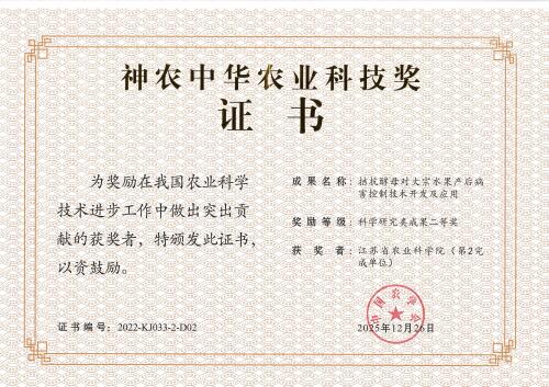装备所参与完成的科研成果荣获神农中华农业科技奖二等奖