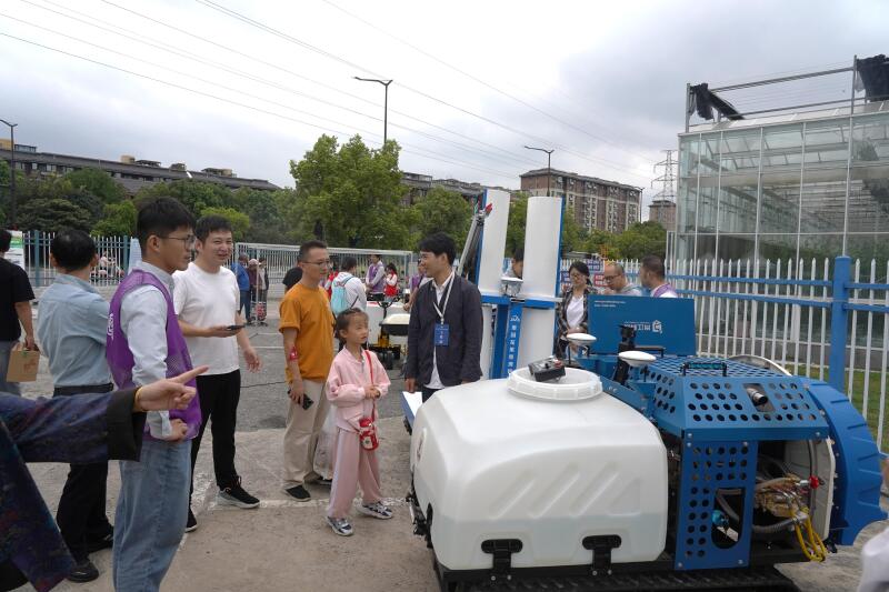 在线下活动现场,《扬子晚报》《现代快报》小记者团等100余人走进基地,近距离参观枝条粉碎机、山地园艺拖拉机、挖掘机等农机装备。这些往常在田间地头忙碌的“大家伙”,瞬间变成了孩子们眼中的“科技明星”。大家纷纷举手提问、与装备合影打卡,在寓教于乐中感受现代农业机械的智慧与魅力。
